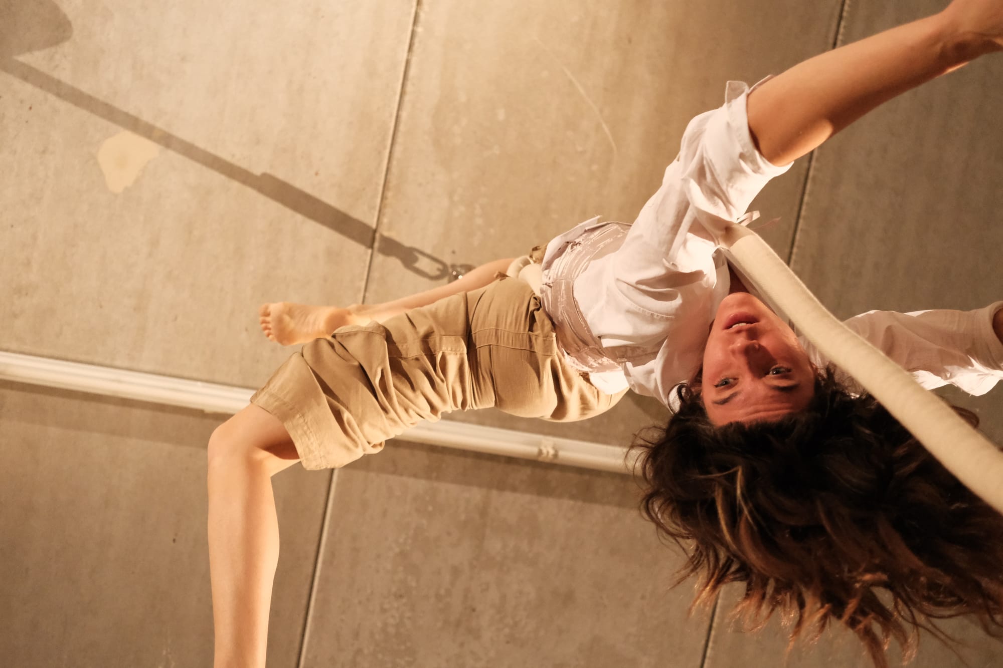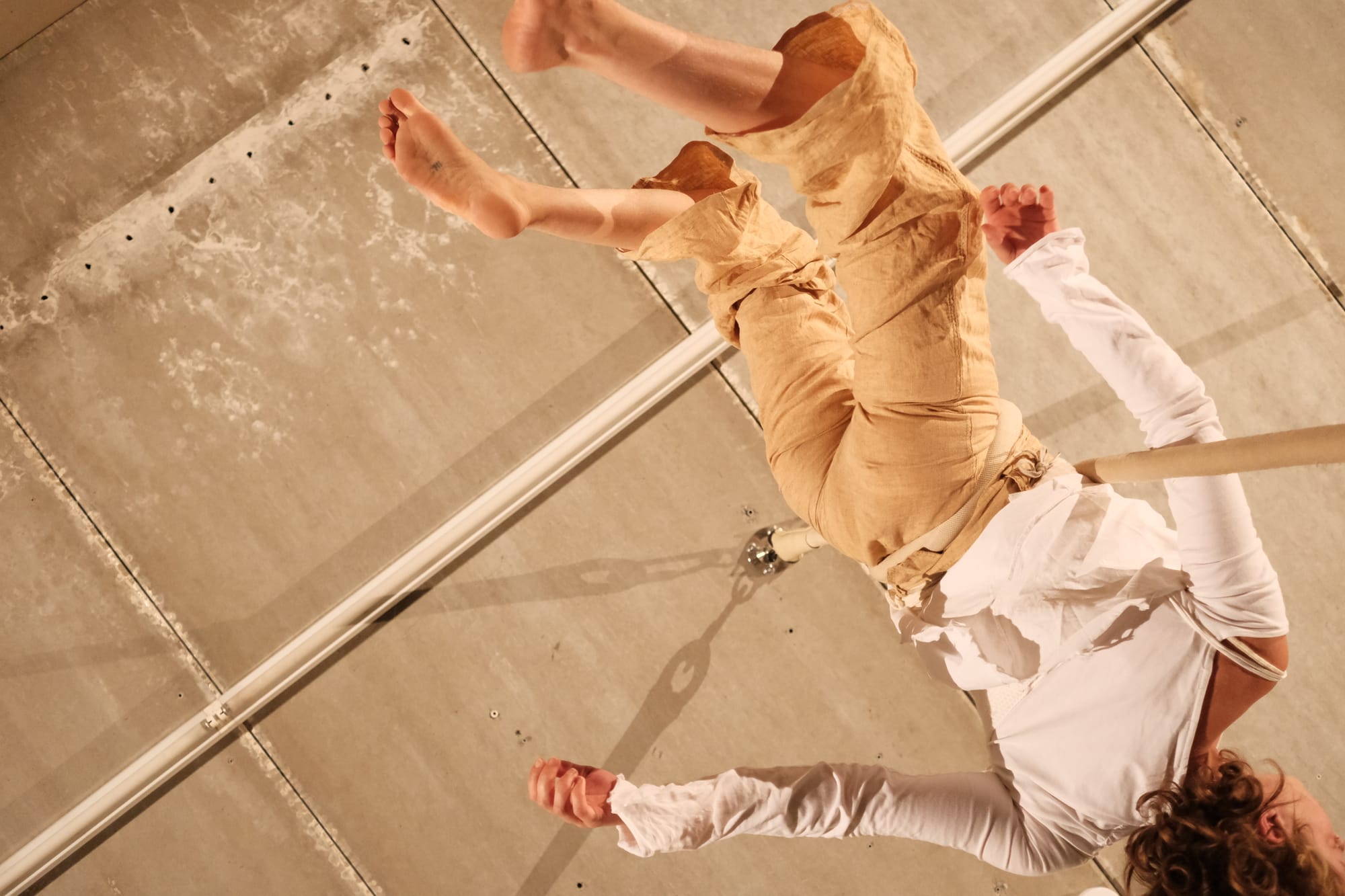 “Movement instead of stillness. Subjects instead of objects. Participation instead of observation.” It questioned not only the relation between performers and audience, but also the fundamental conditions under which circus takes place. In the low-ceilinged exhibition rooms, rope, movement, and duration were transformed. Instead of a one-hour show, a performative triptych of workshop, open improvisation, and short, intimate acts emerged."