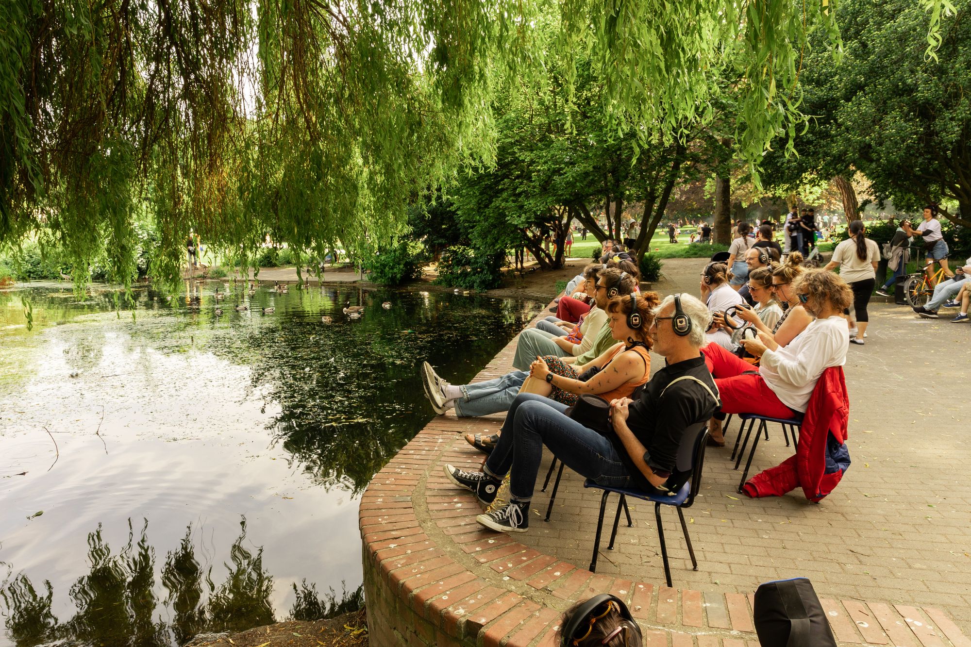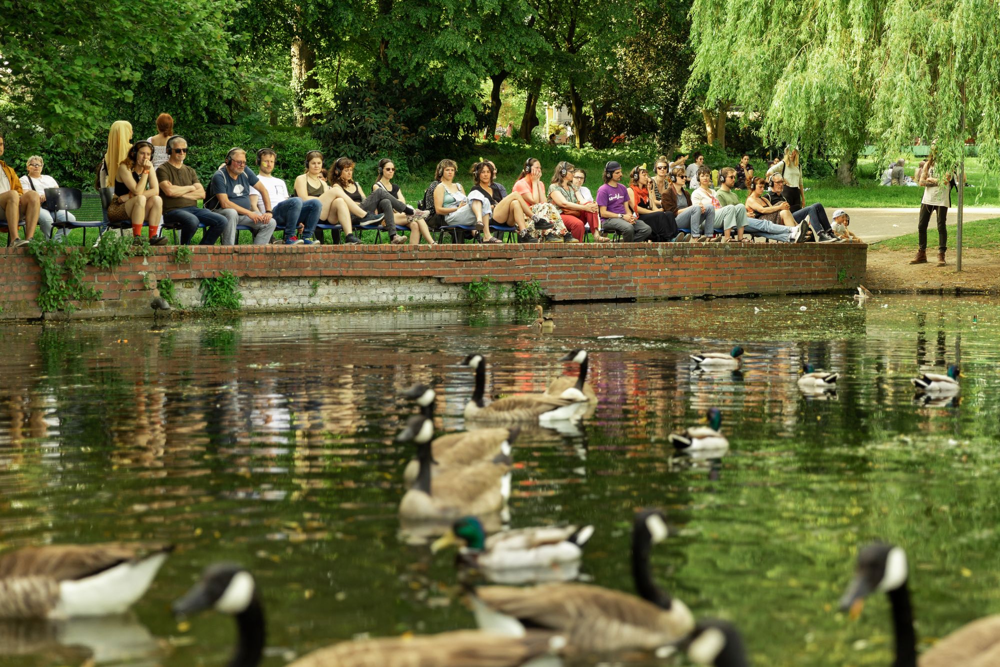 Eventually, the group is led to a pond in the local park, where – YES! – ducks are present. The fine line between mere presence and performance is teased out here. The performance is open-ended and our group leader is no longer in sight. We are no longer a group, acting as one, but a crowd of individuals who must decide for themselves when to leave the park, return their chairs, and end the performance.