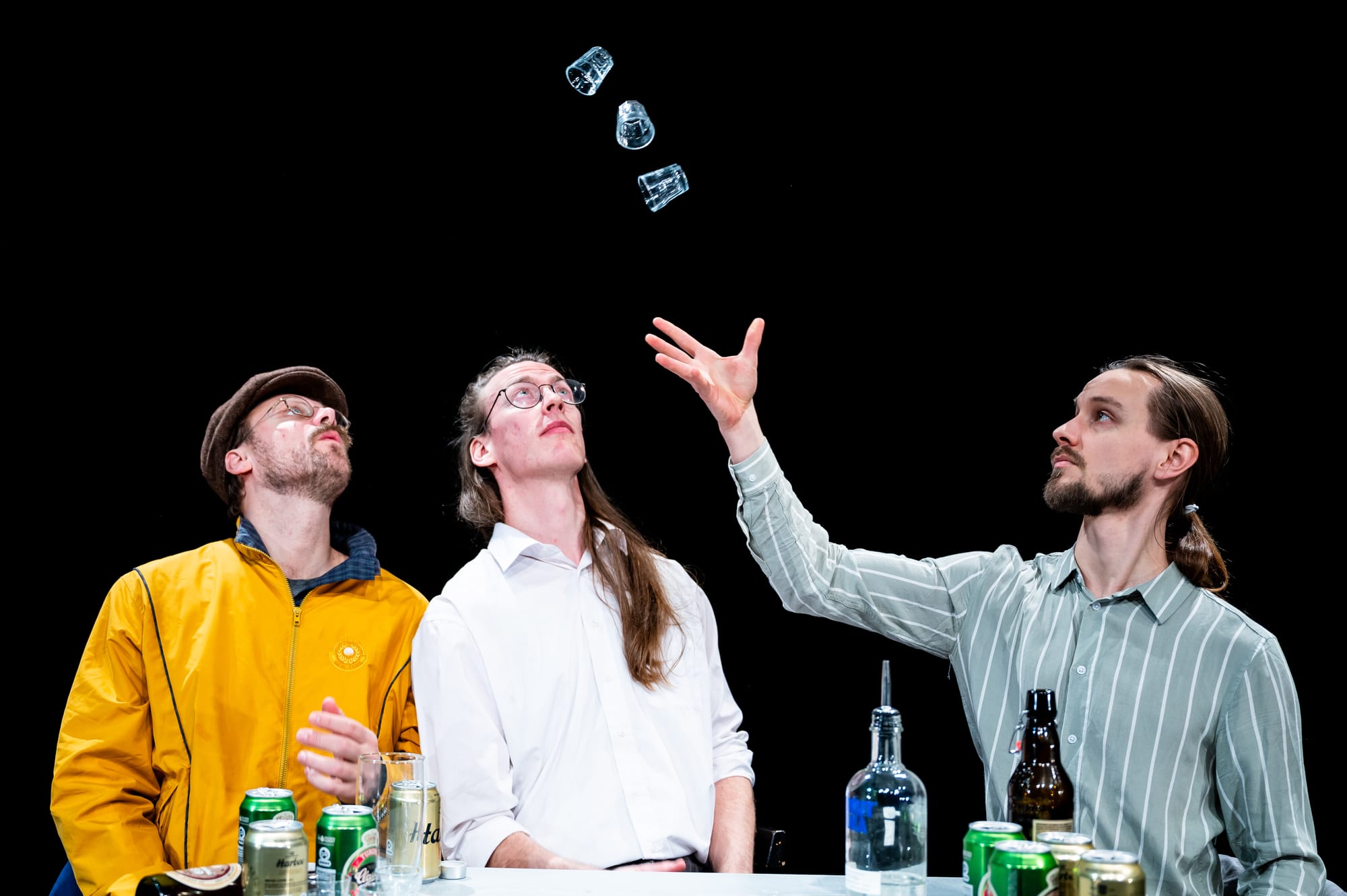 ES: Happy Hour is your second production with the Nordic Council, following Three Men from the North, and retaining some of the themes and motifs of Nordicness, masculinity, relationships, and drinking culture. How did you land on these tropes in the first place, and why is it important that they are put on stage?