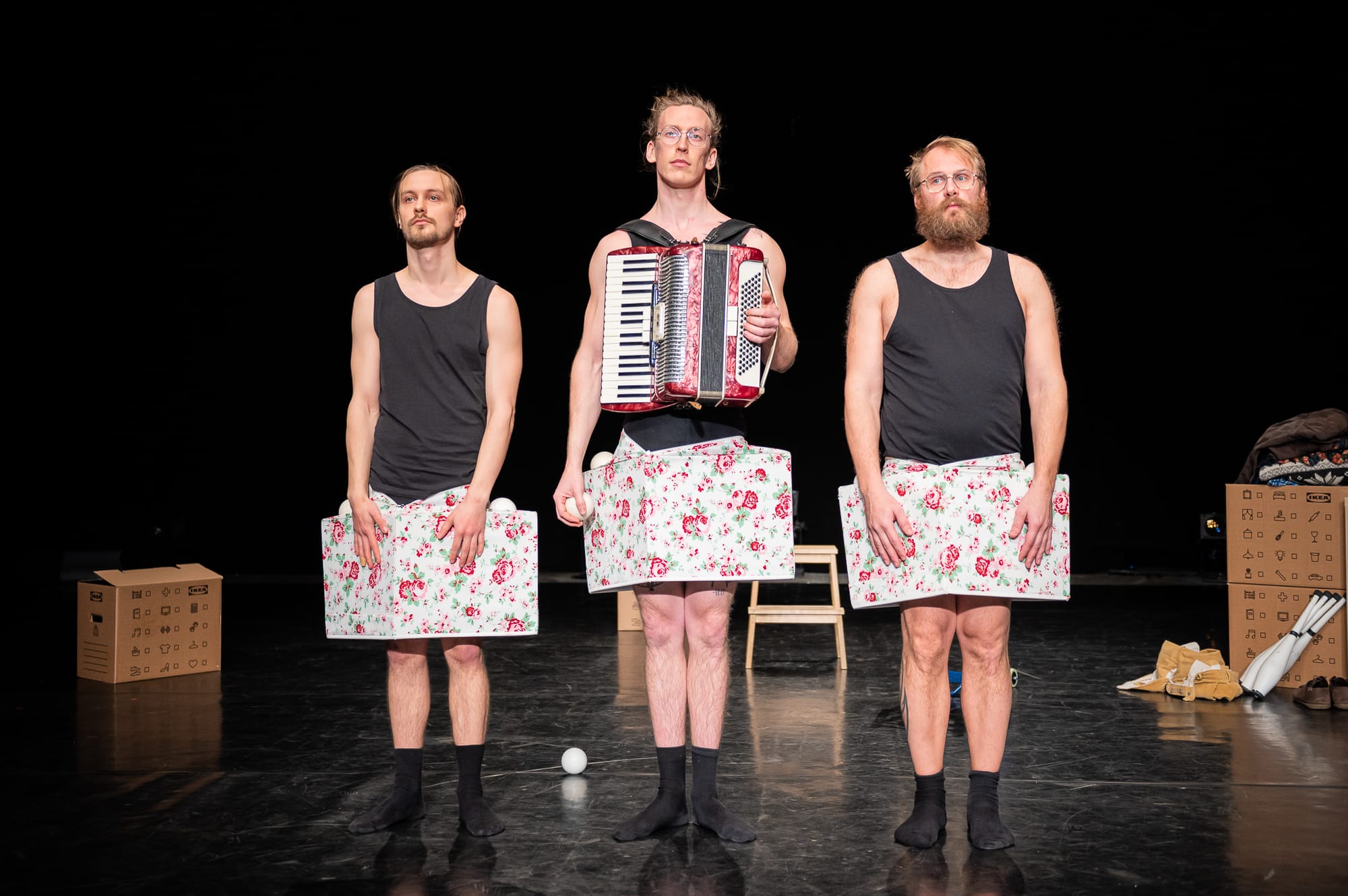 JJ: I think we tap into a certain aesthetic or creation mood. For the first show, big influences were, among others, Tanter by Vixen, Undermän, by Olle Strandberg—smaller ensemble shows, let’s say, trios or quartets. I saw quite a bit of this in the Nordics, also mixed with a type of patchwork, DIY aesthetic, and everyone bringing different skills to the creation. I'm not saying that we are defining Nordic circus, but we are part of an established pantheon; within this context, there's an aesthetic that we also follow, whether that is due to subtlety of taste, or for financial reasons, I don't dare say, but there is something there.