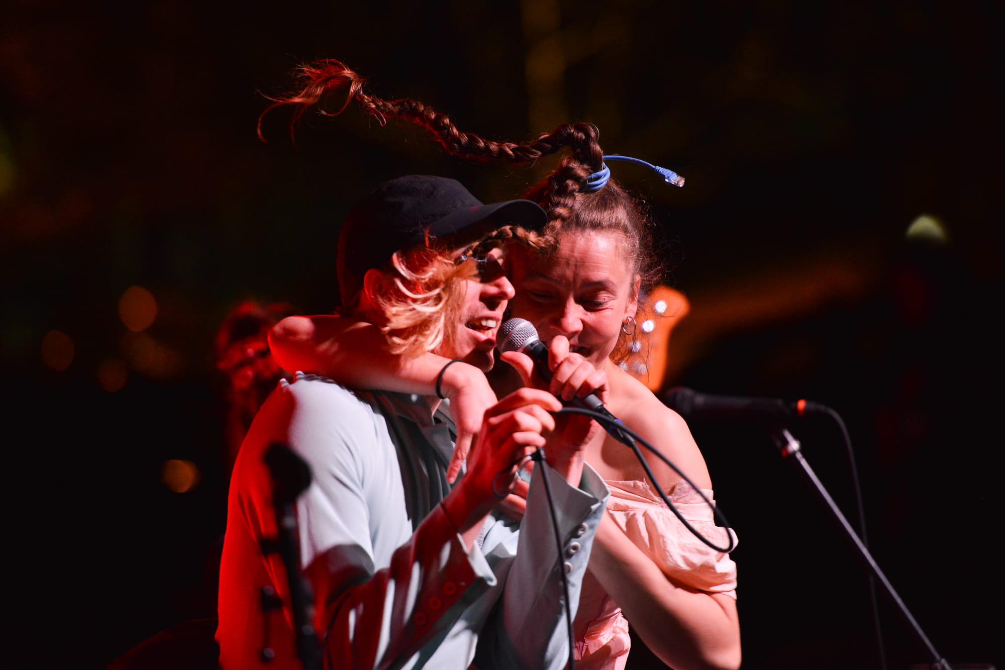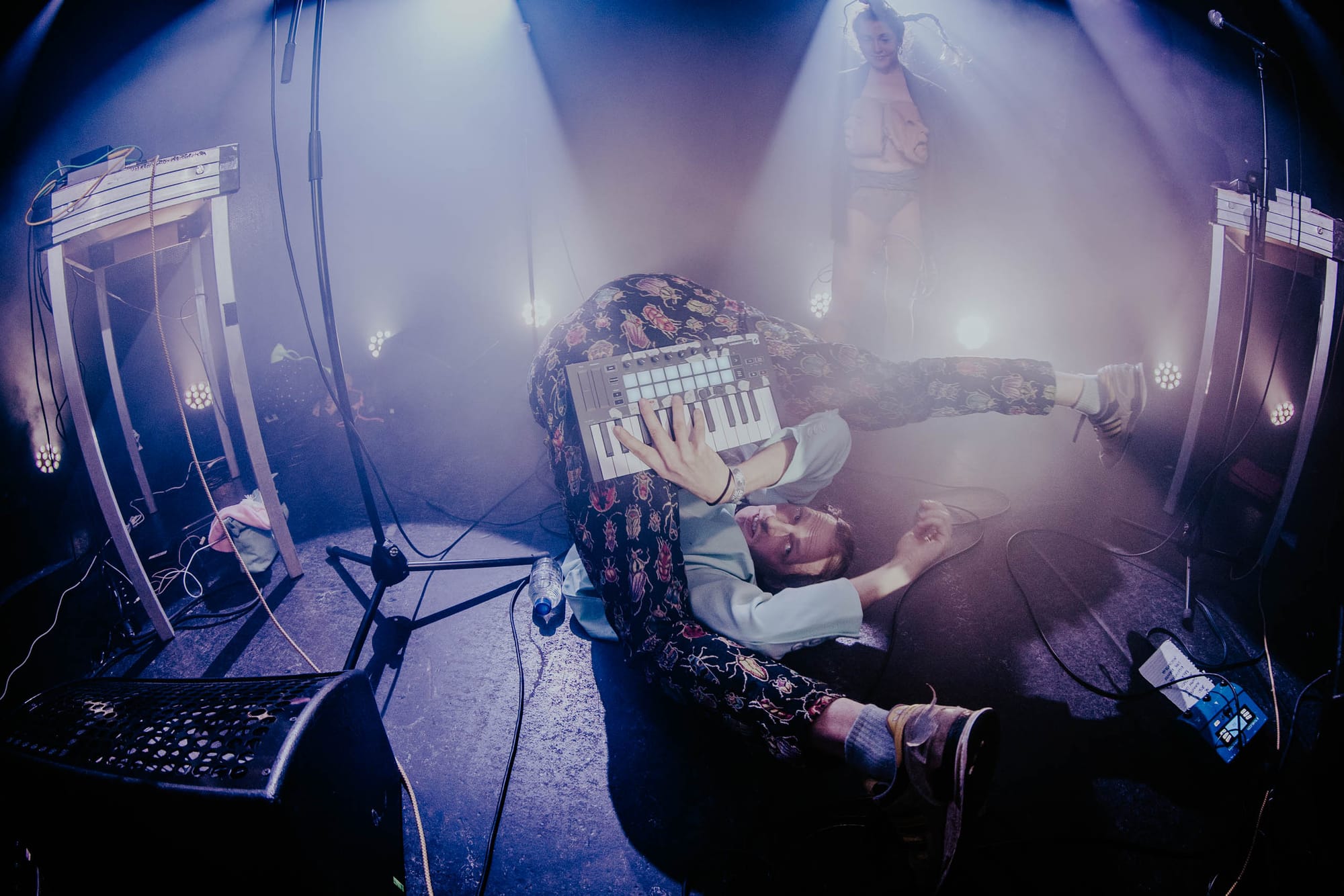 Heidi is the only band member without a circus background, but her stage presence is very circus-like, and it’s feral. I found her performance to be theatrical, which was an appealing addition to the whole concert. At first glance, Niklas seems like a boy who enjoys baseball and video games, but if you look closer through his fluo-pastel nerd attitude, his appearance hides the temperament of a geeky sound engineer. I found him to be a true musical chameleon, a one-of-a-kind energy ball that takes over the stage. I enjoyed his physical presence and his trippy sound design.