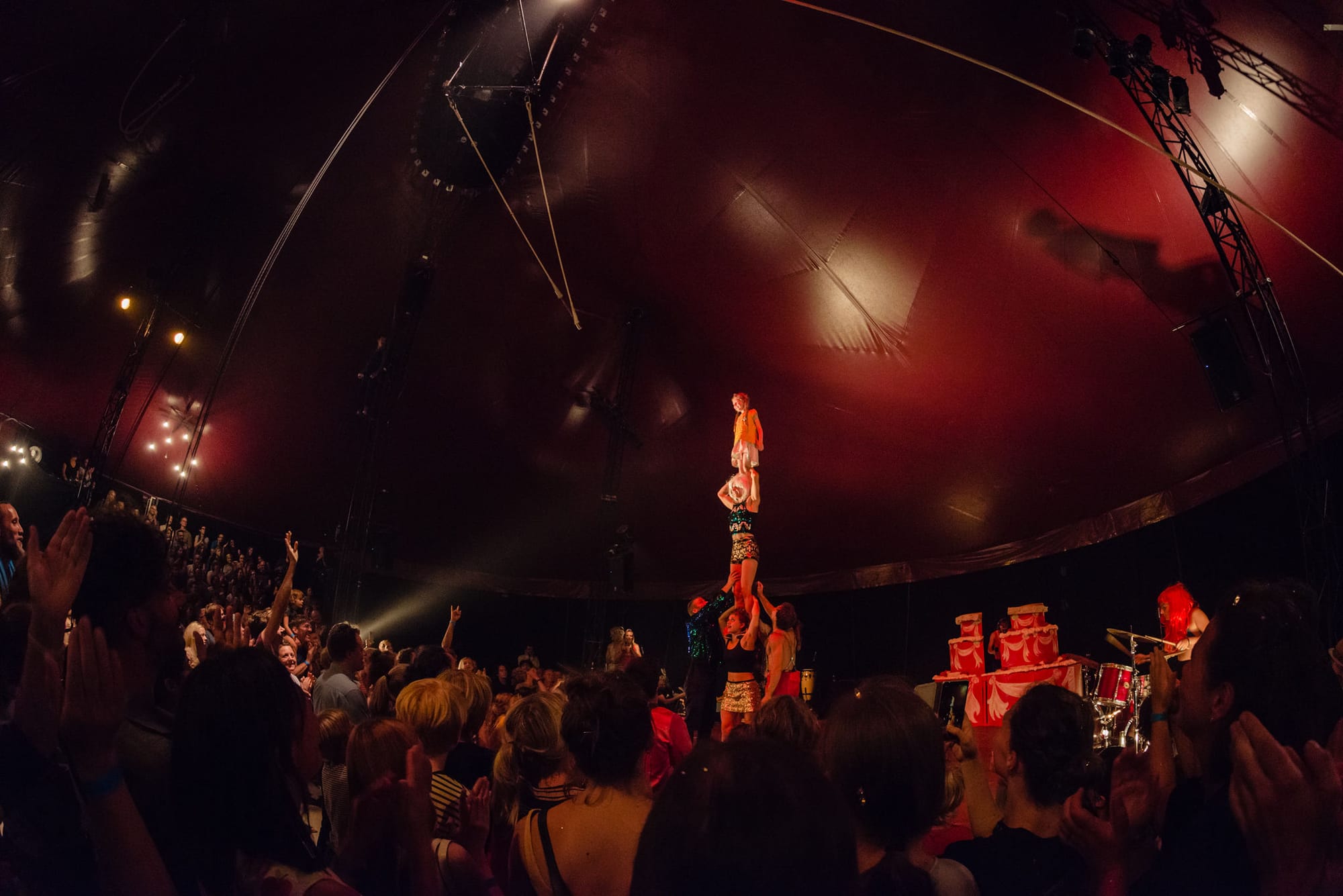 Being open to all is the key to the collective's artistic practice, and the big top is a highly effective medium for maintaining it. As well as disrupting the urban landscape, its aesthetic appeal tacitly appeals to a wide variety of audiences. Our collective imagination of the circus, contemporary or otherwise, has largely crystallised around an image of the circus arts from the 19th century, as Franziska Trapp describes in her book Readings of contemporary circus, ‘clowns, trapeze artists and, above all, the big top as a place accessible to all.’