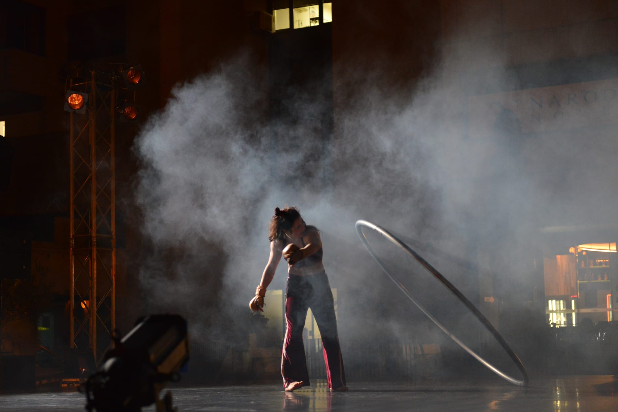 The context of two performances, Instante and Lontano, is best described as a temporary disruption in the everyday life of the neighborhood Split 3, an urban brutalist mastodon from the 60s, in which the appearance of exciting contemporary circus creation remained tightly enclosed in its shell, with occasional intrusions from the world it briefly inhabited. Cie 7Bis’s diptych is a two 30-minute solo cyr wheel performance combination that speaks of two completely different themes.