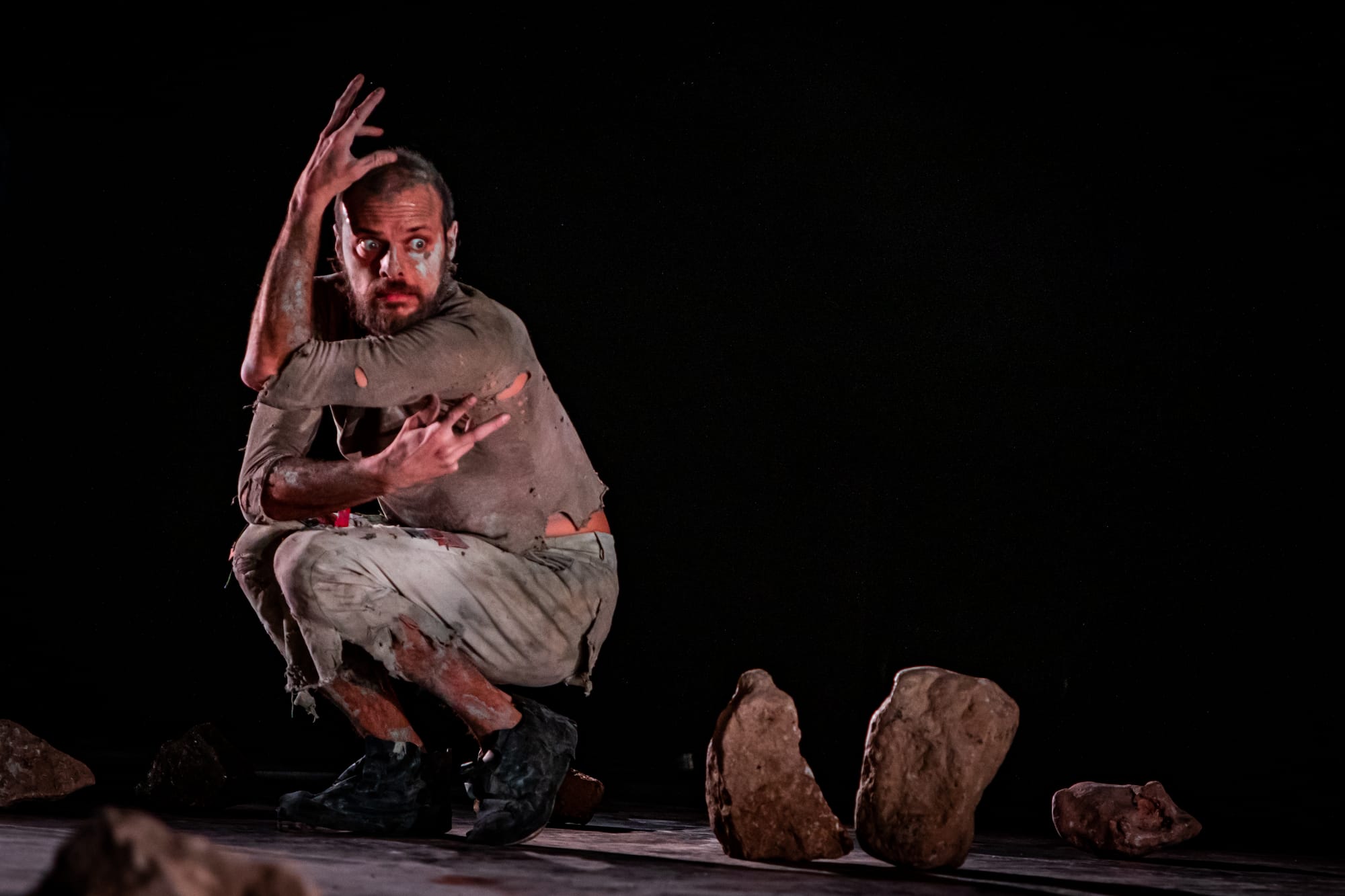 A circus artist who has been active for twenty years, trained at Flic Circus School in Turin, and then Esac in Brussels, founder of the French company Circocentrique and the Italian circus tent collective MagdaClan. After several group tours he chose the solo route with 2984, released in 2023. The title is a clear homage to Orwell in which the tragic prospect of a burnt-out, lifeless future becomes a pretext for rediscovering intimacy with oneself. An acrobatic juggler, Alessandro experiments on stage by relating with stones of all shapes and sizes, giving life to a dystopian scenario in which the boundaries between dance, theatre and circus are largely overcome to become one.