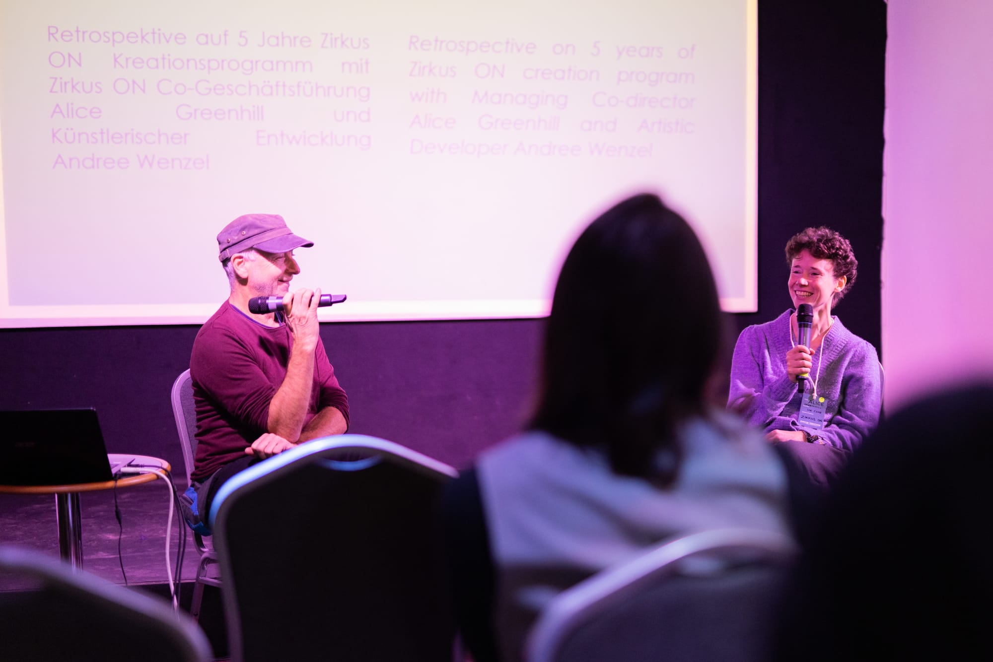 We all know the emergent sensation accompanying the idea of impossible things happening. The motivation we suddenly find when we want to achieve something, but we are still determining what it will be. Most of the time, we want to talk with someone who listens to our thoughts and gives feedback, extracting the possibilities and ordering them inside our mind, helping us uncover previously hidden potential to make it happen. In the case of Zirkus ON, it all started from a conversation on a bus transfer during a Circostrada meeting. The Artistic Director of the German Creation Alliance for Contemporary Circus, Andree Wenzel, met the English Change Management Consultant and founder of Circus Futures, Verena Cornwall, chatting about ways to engage the national contemporary circus sector.